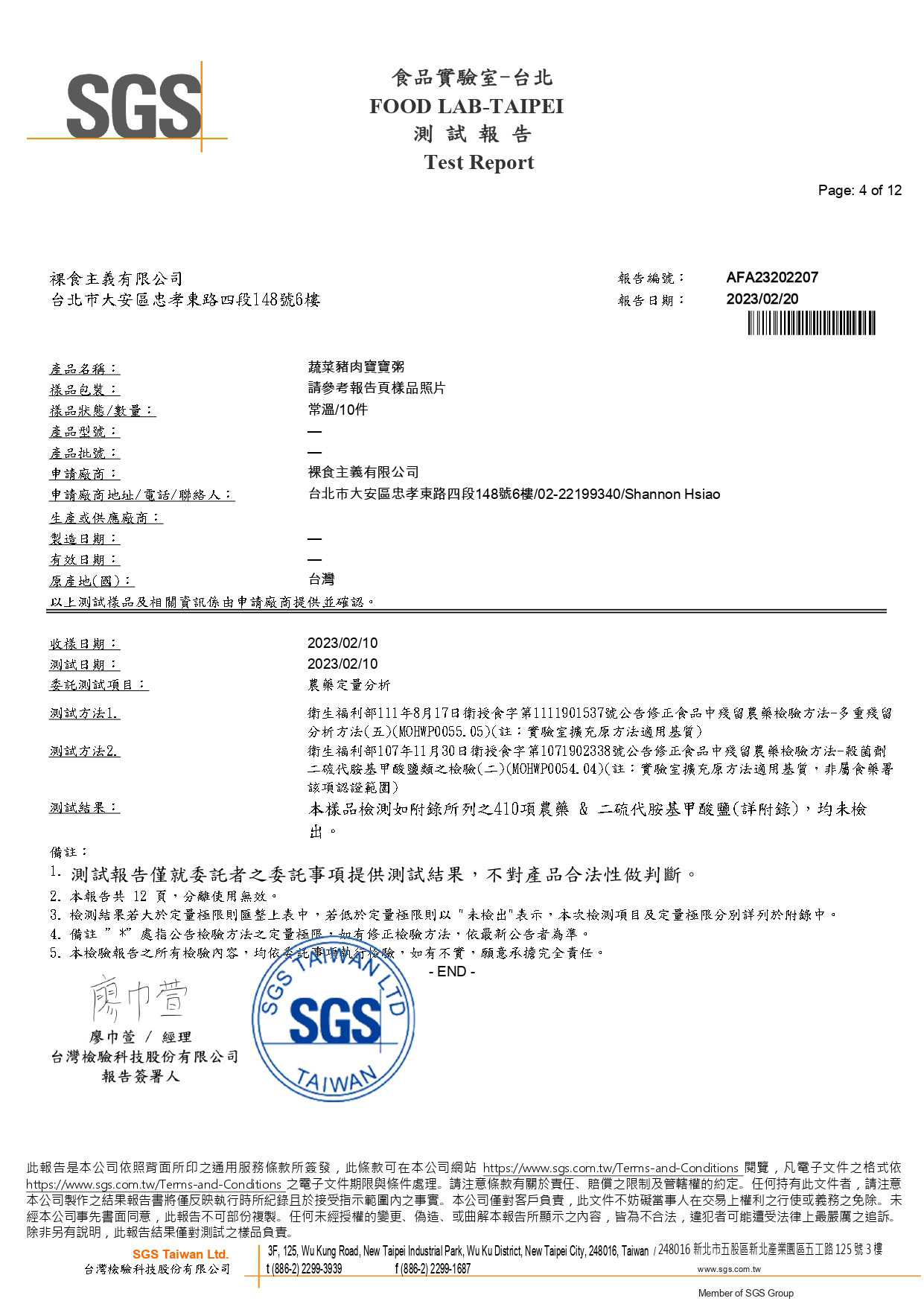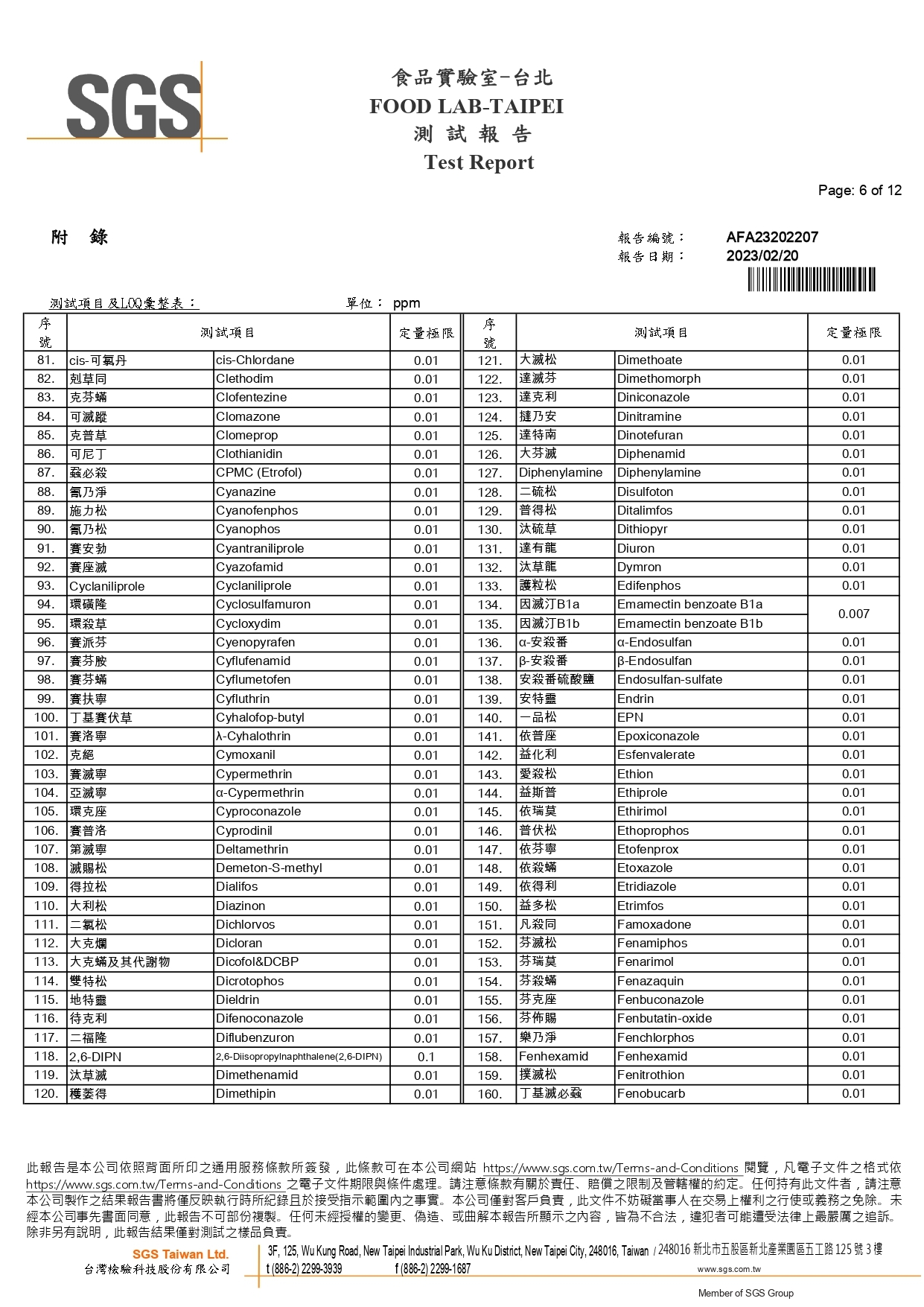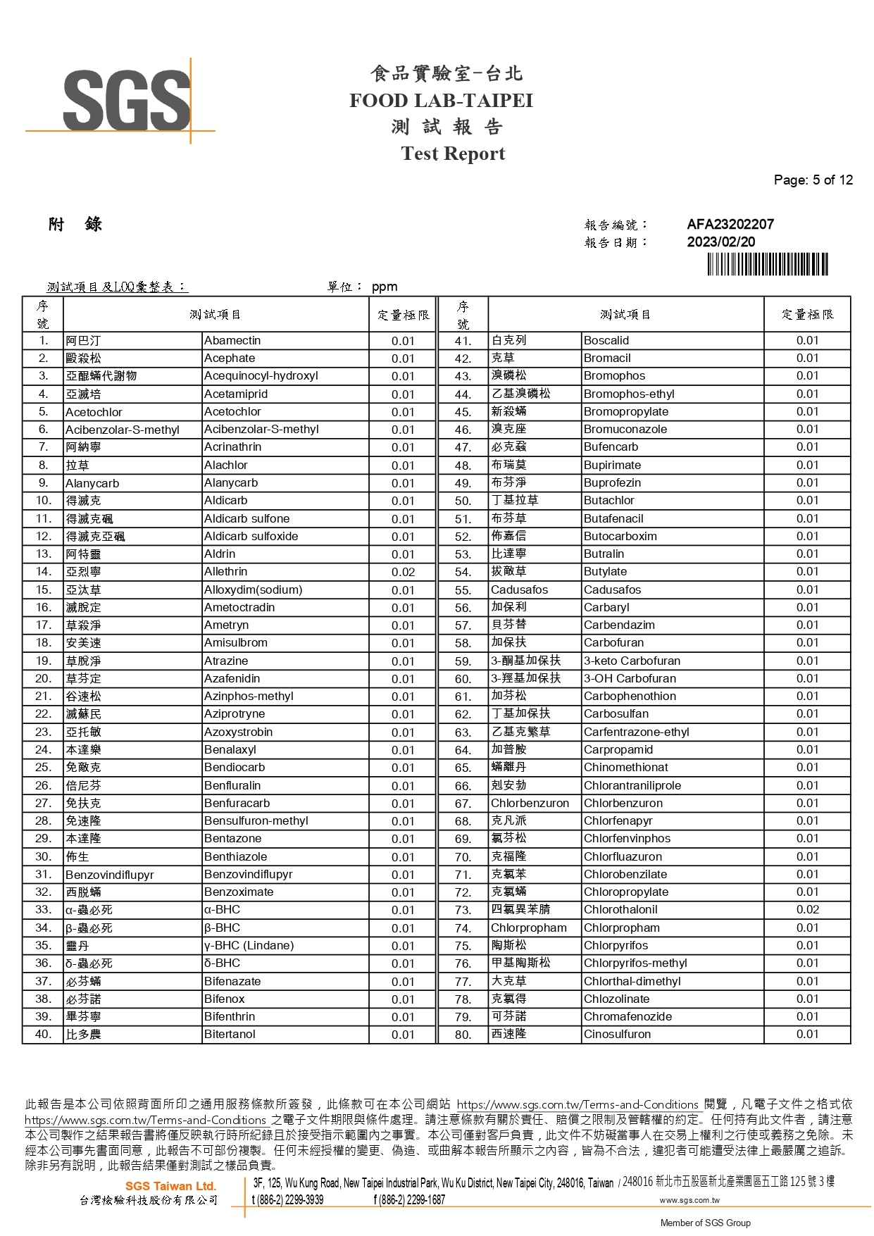 農藥殘留檢驗報告