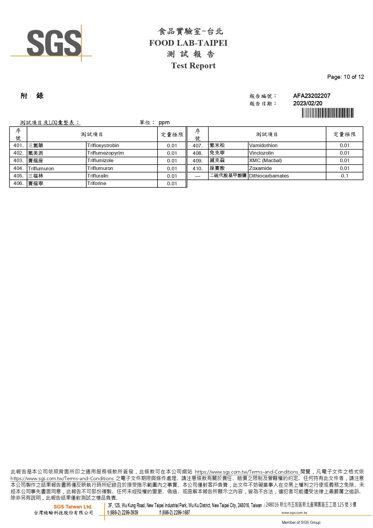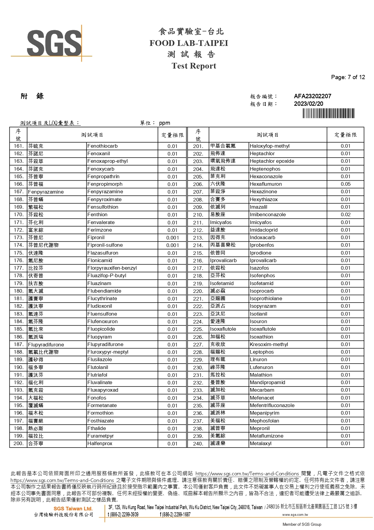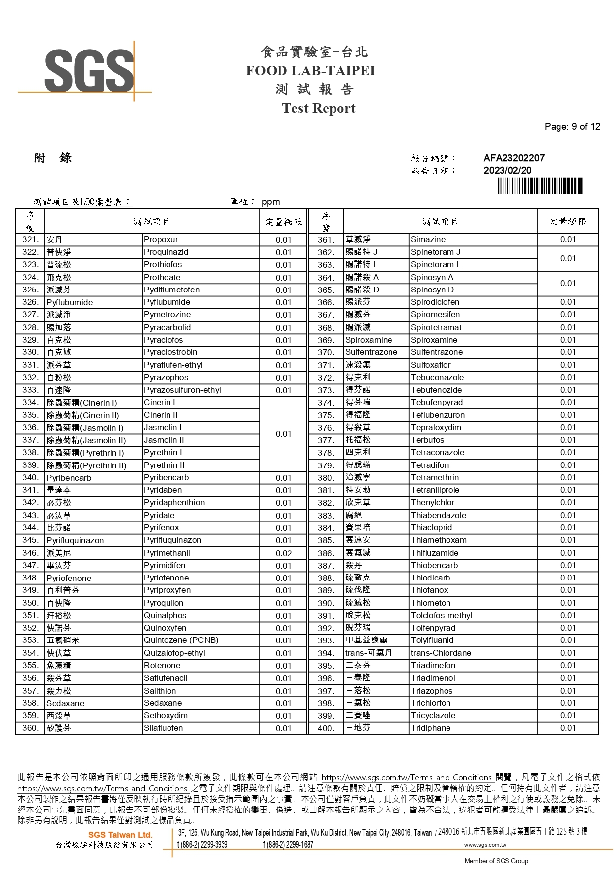 農藥殘留檢驗報告