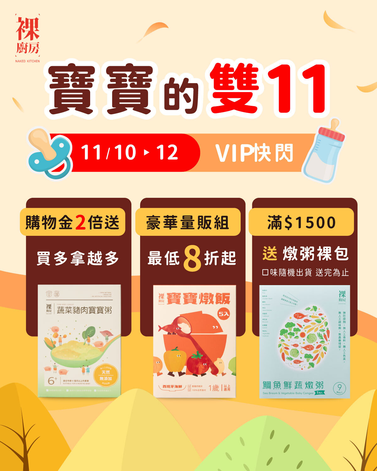 * 會員專屬寶寶粥、燉飯、調理包滿$1500再送鯛魚鮮蔬燉粥一包(訂單不累贈)